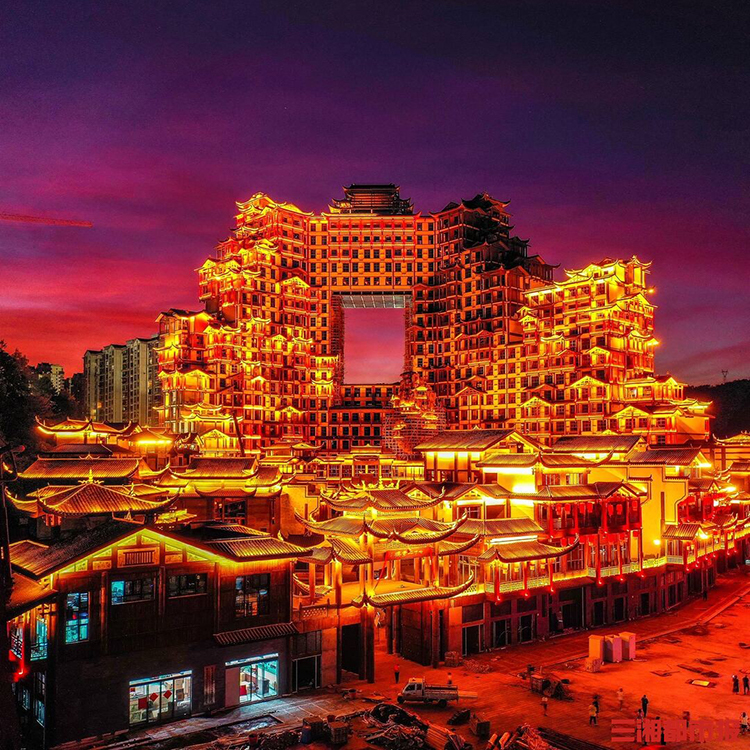 它將獨(dú)特的土家族建筑奇觀與現(xiàn)代光影科技(如全息投影、互動燈光秀)完美結(jié)合,打造出極具沉浸感的夜間文化體驗(yàn)場景,并通過引入豐富的地方非遺展示、特色美食集市與沉浸式演藝活動,成功激活區(qū)域夜游經(jīng)濟(jì),為游客提供了傳統(tǒng)與現(xiàn)代交織的全新文旅樣本,引領(lǐng)了沉浸式文化夜游的新風(fēng)潮。