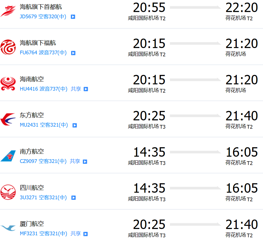西安咸陽國際機(jī)場有直飛張家界荷花機(jī)場的航班,具體參考如下: