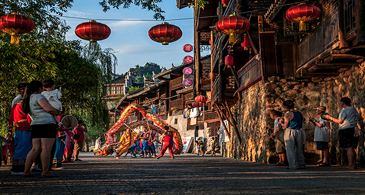 ──瑤族團圓節(jié),是為紀(jì)念瑤族先祖六男六女受封婚配,團圓成親之日。每年的農(nóng)歷七月十五日,瑤人殺牲慶賀,喜氣洋洋。入夜,敲鑼打鼓,到村外燃燒篝火,舞動火龍火獅,圍堂歌舞,直到深夜甚至通宵達(dá)旦。