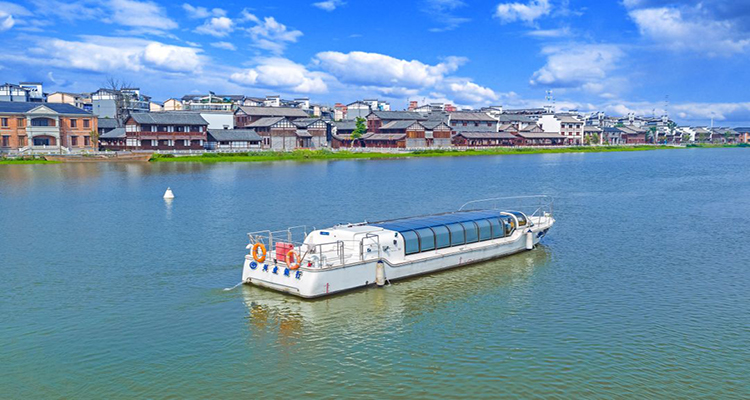 入夜,槳聲燈影里的穿紫河,一艘艘游艇載著游人溯河而上,實(shí)景劇《夢回穿紫河》在兩岸次第呈現(xiàn),讓游人享受美輪美奐的文化洗禮。