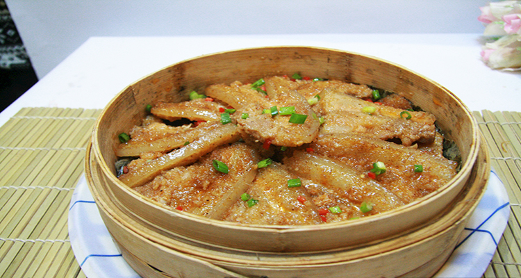 竹籠米粉肉來自邵陽綏寧,是一道苗家特色美食蒸菜,是許多苗家人過年時(shí)必不可少的美味佳肴,寓意日子蒸蒸日上,同時(shí)也是一道孝心菜,源于古典故事,有孝順父母的意思。主要食材是五花肉和米粉,肉香和米香交織,特點(diǎn)是醇香可口,肥而不膩。