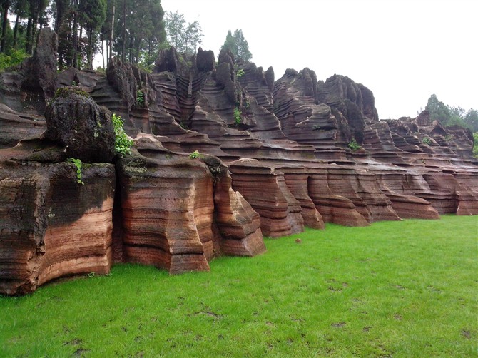 據(jù)地質(zhì)專家考證:紅色石林巖石形成的歷史約4。5億年,地質(zhì)史上稱之為揚(yáng)子古海(海底沉積了大量混合泥沙的碳酸鹽物質(zhì),經(jīng)地殼運(yùn)動(dòng)和侵蝕、溶蝕作用形成了這片美麗的地質(zhì)奇觀)。景區(qū)內(nèi)遍布高大奇石,造型各異、顏色變化多端,且隨天氣、時(shí)間、季節(jié)變化而變化,晴紅雨黑、陰轉(zhuǎn)褐紅、晨昏有別。 景區(qū)內(nèi)石景有:蜀犬吠日、乳燕待哺、樓蘭古城、蝸牛搬家、七彩迷宮、利劍刺空、航母巡游、石兵列陣、少女出浴、觀音坐蓮、石鞭候主、靈龜探海、粽熊迎客、天狗吠日、水獺望云、母雞搗窩、駝鈴聲聲····尤以“巨人圓”、“古城故宮”、“八卦奇陣”、“諸葛藏書”為奇石絕景中的最佳。 景區(qū)內(nèi)還有地下溶洞、絕壁天坑、神秘地坑、千年古木、土家山寨、土風(fēng)民俗、集商遺址····