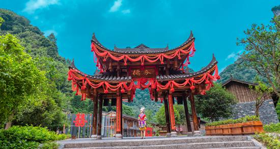 吉首市德夯風景區(qū)地處云貴高原邊緣,位于湘西土家族苗族自治州首府吉首市西郊,距吉首市24公里。德夯旅游區(qū)以矮寨為中心,東到堂樂洞、西到大龍洞,南從武山、蓮臺山開始,北到流紗瀑布(全國落差最高的流紗瀑布和瀑布群),小龍洞,總面積約190平方公里。自矮寨鎮(zhèn)洞溪上行4公里至德夯苗寨,沿岸筒車、水輾、古渡、小舟,伴以苗家吊腳樓,一派田園詩情。九龍溪穿寨而過,四周山色清幽,懸崖如削......在青山綠水間,點綴著一幢幢灰瓦石基吊腳樓,一條條光滑的石板路,一座座精巧的石拱橋,一群群赤足紅裝的浣紗苗女。還有那古老的石碾和筒車,在水力的帶動下,咕咕嚕嚕、咿咿呀呀,不知疲倦地旋轉著,一派田園詩情,這就是德夯苗寨。由于這里是純苗區(qū),苗族人民的風俗習慣對德夯影響很大,苗族人民的四月八、跳鼓舞、三月三歌會、趕秋、接龍、推牛以及苗嶺情歌,無不吸引著中外游客。因此,古樸優(yōu)雅的苗族風情又成為德夯人為景觀的特色?!》灿稳藖淼竭@里,都被德夯神奇的自然風景和濃烈的苗族風情所陶醉,令人有詩贊曰:一人盤古到如今,佳境蓬萊何處尋?莫向仙神詢去路,湘西德夯醉游人。