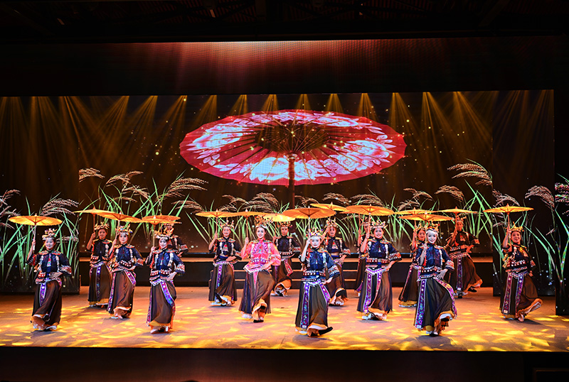 本臺非遺演藝,始終圍繞“展示、變遷、發(fā)展”的邏輯線,關鍵詞為“展演”,視覺感官為“秀”。通過我們的演繹,讓普通觀眾在了解湘西非遺異質文化特點的基礎上,看懂看明白民族文化的演變發(fā)展,更好的推廣宣傳湘西。