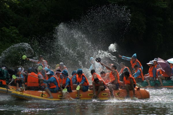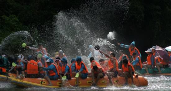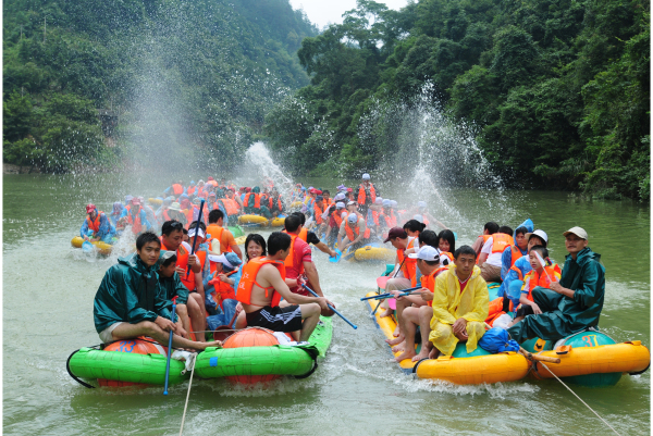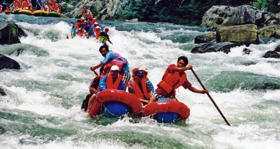 被譽為“中國生態(tài)第一漂”,位于東江湖最南端的黃草鎮(zhèn)境內(nèi),全程26千米。從龍王廟起漂點到燕子排終漂點整個落差75米,急灘108個,漂流河道兩巖有保存比較完好的原始次森林,奇巖怪石林立,古樹遮天蔽日,老藤攀崖附壁,飛鳥跳躍枝頭。東江漂流以其灘多浪急落差大、水碧石怪魚奇怪、兩岸森林植被佳而 聞名,是國內(nèi)目前最具探險的融歷險、探幽、獵奇、拾趣為一體的漂流去處。